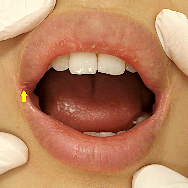 右側(向かって左側)も、既に薄皮がかぶって治癒傾向にあり、注視しないと分からないレベルです。