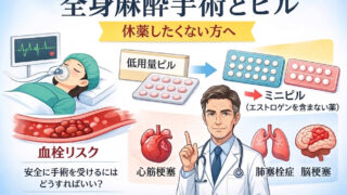全身麻酔手術前にピルを中止する理由を医師が解説。血栓症リスクと術前4週間休薬の必要性、ミニピルなどの代替手段や注意点(ジェノゲストの避妊効果)までわかりやすく説明します。