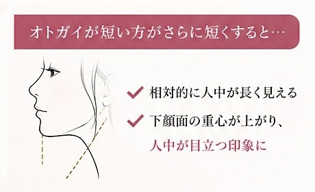 - すでにオトガイが短い方 → 人中が強調される可能性あり