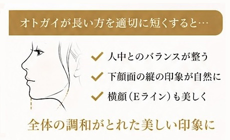 - オトガイが長い方 → バランスが整い、むしろ美しく見えることが多い