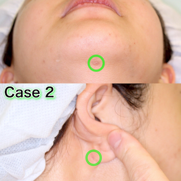 こちらの写真(Case 1)は、【頬・顎下の脂肪吸引】の術後3ヶ月目です。傷痕はどこかわかりますか?